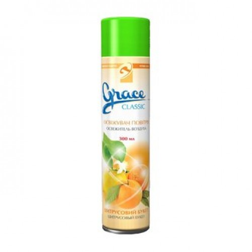 Освежитель воздуха "Цитрусовый букет" Grace Classic Особенность - Объем 300 мл Новинка Нет Топ продаж Нет Освежитель воздуха "Цитрусовый букет" Grace Classic представляет собой средство, которое поможет сохранять приятную атмосферу в помещении. Вы будете покорены потрясающим сочетанием ароматов лайма, грейпфрута и сочного апельсина. Качество продукта подтверждают мелкодисперсное распыление и насыщенное, стойкое благоухание. С приобретением этого освежителя ваш дом будет наполнен приятным ароматом.