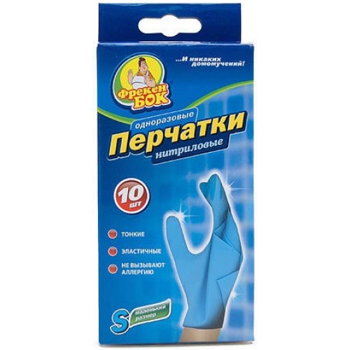 Перчатки нитрил синие фрекен бок одноразовые размер S Основные Тип Одноразовые Основное назначение Универсальное Материал Резина Размер S Тип манжеты Короткая Рабочая поверхность Гладкая Внутреннее покрытие без покрытия Цвет Голубой Ароматизированные Нет Количество пар в упаковке 4 и более Производитель Фрекен Бок Страна производитель Китай  -; Для бытового назначения Суперчувствительные Эластичные Не вызывают аллергию Количество шт. в упаковке: 10 Размер : S Производитель: Фрекен Бок, Китай