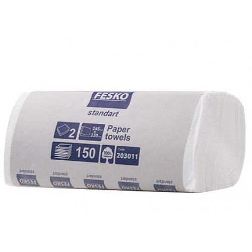 Белые бумажные полотенца V-сложения 150л. Fesko Основные Страна производитель Украина Тип бумажных полотенец Листовые Тип сложения V (Z-Z)-укладка Материал основы Целлюлоза Количество слоев Однослойные Плотность бумаги 50.0 (г/м2) Количество листов в пачке/отрывов в рулоне 150 (шт.) Длина листа 23.0 (см) Ширина листа 25.0 (см) Тиснение Да Перфорация Нет Цвет Белый  -; Высокая впитываемость Прочность во влажном состоянии Способ укладки: V Один слой Размеры, см: 23х25 Количество шт. в упаковке: 150 Цвет: белый Производство: Fesko, Украина