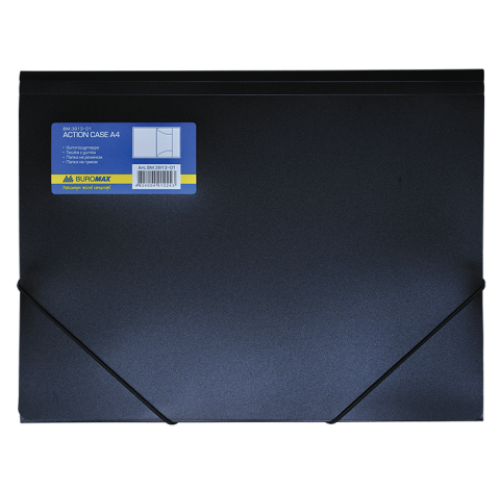 Папка пластиковая BUROMAX, А4 на резинках, черный Материал Серия Формат Цвет Толщина обложки Новинка Нет Топ продаж Нет Стильная пластиковая папка BUROMAX – изготовлена из высококачественного гладкого пластика классических цветов, толщиной 550 мкм. Идеально подходит для предотвращения замятия и загрязнения листов бумаги, а также, для хранения и транспортировки документов! Содержимое папки защищено благодаря 3 клапанам, которые предотвращают выпадения документов. Есть возможность расширения корешка и боковых клапанов! Закрывается при помощи двух угловых резинок. Формат А4. Четыре цветовых решения в дизайне: черный, зеленый, синий, красный. Папки BUROMAX – надежность и качество!