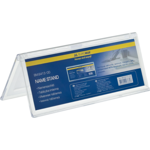 Именная табличка двухсторонняя 200*72мм Материал полистирол Особенность двухсторонняя Размер 200х72 мм Цвет прозрачный Новинка Нет Топ продаж Нет Именная табличка BUROMAX – помощник во время проведений конференций, семинаров, презентаций, круглых столов. Также, применяется в ресторанах и кафе для демонстрации специальных меню, «горячих предложений», а в отелях и офисах – для обозначения столика рецепции и администратора. Полиграфический вкладыш легко меняется, а прозрачный полистирол, из которого изготовлена табличка BUROMAX , не искажает цветопередачу и четкость изображений. изготовлена из прозрачного полистирола углубление для пальцев позволяет легко заменить вкладыш в табличке толщина: 2,5 мм размер: 200х72мм BUROMAX – это качество и надежность!
