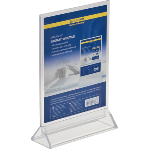 Информационная табличка двухсторонняя 150*200мм Материал полистирол Особенность двухсторонняя Размер 150х200 мм Цвет прозрачный Новинка Нет Топ продаж Нет Информационная табличка BUROMAX – помощник во время проведений конференций, семинаров, презентаций, круглых столов. Также, применяется в ресторанах и кафе для демонстрации специальных меню, «горячих предложений», а в отелях и офисах – для обозначения столика рецепции и администратора. Полиграфический вкладыш легко меняется, а прозрачный полистирол, из которого изготовлена табличка BUROMAX , не искажает цветопередачу и четкость изображений. изготовлена из прозрачного полистирола углубление для пальцев позволяет легко заменить вкладыш в табличке двухсторонняя размер: 150х200мм BUROMAX – это качество и надежность!