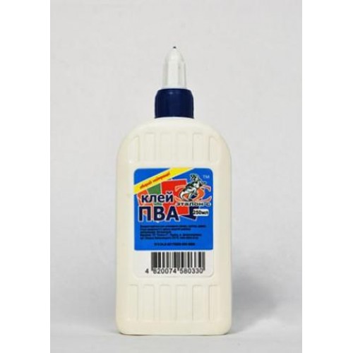 Клей ПВА 250мл, колпачок-дозатор Особенность - Тип ПВА Объем, вес 250 мл Новинка Нет Топ продаж Нет Предназначен для склеивания бумаги, картона, фото, дерева, ткани. На водной основе PVA (поливинилацетат). Удобный пластиковый флакон с дозатором-колпачком . Не токсичен, смывается водой.