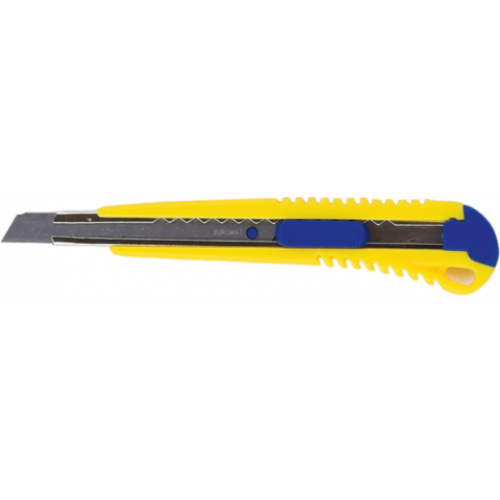 Нож универсальный "JOBMAX" BUROMAX, 9 мм Особенность металлическая направляющая Тип универсальный Материал корпуса пластик Ширина лезвия 9 мм Новинка Нет Топ продаж Нет Универсальный канцелярский нож “ JOBMAX ” от BUROMAX – офисный инструмент для резки картона и других плотных материалов. пластиковый корпус устойчив к механическим повреждениям специальное отверстие для возможности повесить нож на доску с инструментами или на рабочую форму по время строительных работ лезвие изготовлено из стали с надежным механизмом фиксации, обеспечивающий неподвижность лезвия во время работы наличие металлической направляющей - дополнительная устойчивость лезвия и точный ход лезвия даже при работе с твердыми поверхностями нож оснащен съемной заглушкой с насечкой для легкости облома сегмента лезвия на рукоятке блистерная упаковка ширина лезвия – 9 мм размер ножа: 135х20х10 мм сменные лезвия - BM.4690 Канцелярские ножи BUROMAX – это качество и надежность!