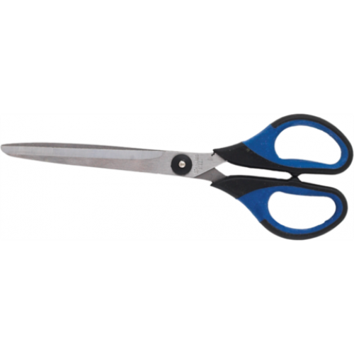 Ножницы с резиновыми вставками, 180мм Особенность резиновые вставки Длина 180 мм Материал ручек пластик Новинка Нет Топ продаж Да Офисные ножницы BUROMAX : подходят для резки бумаги, картона, фотобумаги, ткани и т.д. у ножниц плавный и мягкий ход резки закругленные лезвия изготовлены из нержавеющей стали, и гарантируют безопасность во время резки ручки выполнены из черного пластика с синими прорезиненными вставками эргономичная форма ручек и прорезиненные вставки обеспечивают комфорт во время работы индивидуальная блистерная упаковка открытого типа длина ножниц: 180 мм Ножницы BUROMAX – это качество и надежность!