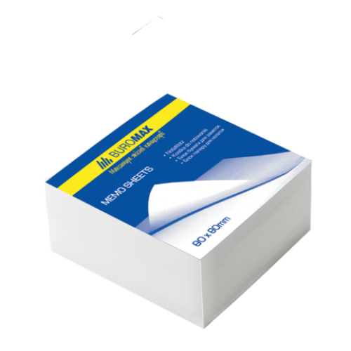 Блок белой бумаги для заметок 80х80х30мм, не склеенный Особенность - Размер 80х80х30 мм Серия - Цвет белый Количество листов - Плотность бумаги, г/м2 55-60 Тип склеивания не склеенный Новинка Нет Топ продаж Да Блоки бумаги для записей от ТМ BUROMAX – простой и быстрый способ зафиксировать важное сообщение и не забыть сделать важное! Идеально подходят для использования сотрудниками офисов, на рецепциях, на почте и просто в каждодневном использовании. Также, их можно использовать как закладку для книг, документов. Это востребованный офисный товар отличного качества по лучшей цене. Бумага для заметок BUROMAX выполнена из высококачественной офсетной бумаги. Упакована в термоусадочную пленку.