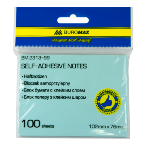 Блок бумаги для заметок 76 x 102мм, 100 листов, ассорти Особенность - Размер 76х102 мм Серия - Цвет ассорти Количество листов 100 Плотность бумаги, г/м2 75 Тип склеивания склеенный Новинка Нет Топ продаж Нет Блок для заметок от ТМ BUROMAX – это Ваш помощник для быстрого создания записей и их хранения на видном месте! Листы сделаны из высококачественной плотной бумаги, гладкая поверхность которой обеспечивает максимальный комфорт письма. Листы отлично держаться на большинстве гладких поверхностях и предметов. Могут многократно переклеиваться не оставляя следов клея. В упаковке 1 цвет, количеством 100 листов.