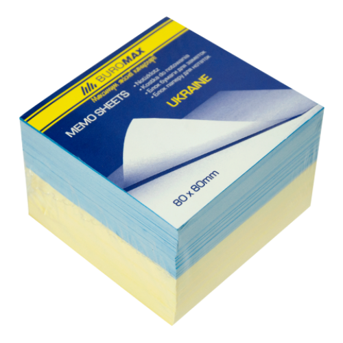 Блок бумаги для заметок "Украина" 80х80х60мм, не склеенный Особенность Украина Размер 80х80х60 мм Серия Цвет ассорти Количество листов - Плотность бумаги, г/м2 55-60 Тип склеивания не склеенный Новинка Нет Топ продаж Нет 100% цветной бумаги (желто-голубой блок),