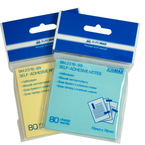 Блок для заметок 76 x76мм, 80 листов, ассорти, с клейким слоем Особенность - Размер 76х76 мм Серия JOBMAX Цвет ассорти Количество листов 80 Плотность бумаги, г/м2 75 Тип склеивания склеенный Новинка Нет Топ продаж Да