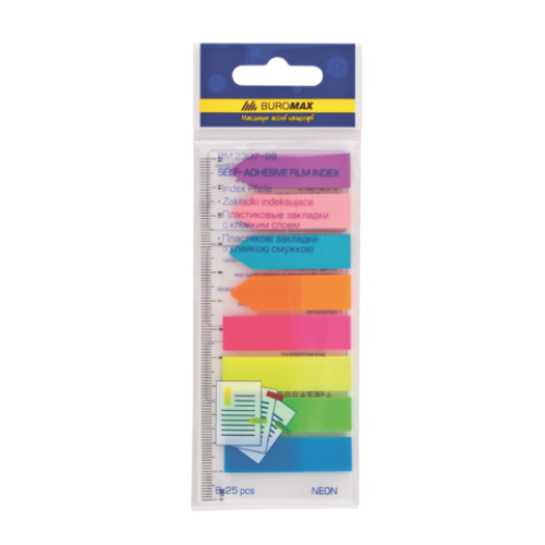Закладки пластиковые NEON 45x12мм+42x12мм, 8х25 листов, ассорти Количество листов 200 Количество цветов 8 Размеры листов, мм 45×-12мм Упаковка opp блистер Цвет листов ассорти Новинка Нет Топ продаж Нет Прозрачные пластиковые закладки NEON от BUROMAX размещены на линейке-диспенсере 12 см. 8 ярких неоновых цветов по 25 листов каждого ширина листов составляет 12 мм выполнены из тонкого пластика отлично подходят для нанесения надписей предназначены для многократного переклеивания и не оставляют следов клея данные закладки – идеальные помощники в выделении нужной информации помогают легко организовать цветовое кодирование страниц часто выступают в роли закладки в книгах, ежедневниках и документах