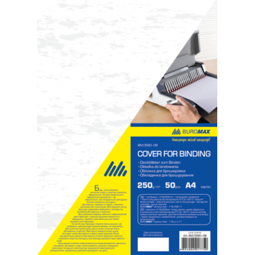 Обложка картонная "под кожу" А4 250гм2, (50шт./уп.), белый Количество сшиваемых листов - Материал обложки картон Материал пружины - Плотность обложки г/м2 250 г/м2 Формат обложки A4 Цвет обложки белый Цвет пружины - Диаметр пружины, мм - Новинка Нет Топ продаж Да Обложка с фактурной поверхность «под кожу» BUROMAX для переплета и профессионального оформления документов! Обеспечивает защиту от механических повреждений (потертости, загрязнения). Возможность выбора индивидуального стиля: различный ассортимент цветов обложек. Предназначена для переплета формата А4. В упаковка 50 шт.