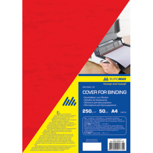 Обложка картонная "под кожу" А4 250гм2, (50шт./уп.), красный Количество сшиваемых листов - Материал обложки картон Материал пружины - Плотность обложки г/м2 250 г/м2 Формат обложки A4 Цвет обложки красный Цвет пружины - Диаметр пружины, мм - Новинка Нет Топ продаж Да Обложка с фактурной поверхность «под кожу» BUROMAX для переплета и профессионального оформления документов! Обеспечивает защиту от механических повреждений (потертости, загрязнения). Возможность выбора индивидуального стиля: различный ассортимент цветов обложек. Предназначена для переплета формата А4. В упаковка 50 шт.