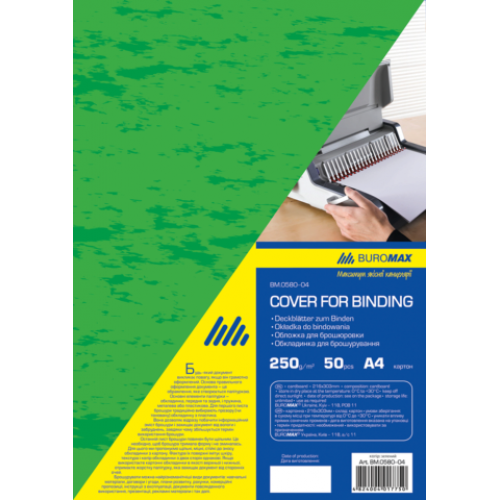 Обложка картонная "под кожу" А4 250гм2, (50шт./уп.), зеленый Количество сшиваемых листов - Материал обложки картон Материал пружины - Плотность обложки г/м2 250 г/м2 Формат обложки A4 Цвет обложки зеленый Цвет пружины - Диаметр пружины, мм - Новинка Нет Топ продаж Да Обложка с фактурной поверхность «под кожу» BUROMAX для переплета и профессионального оформления документов! Обеспечивает защиту от механических повреждений (потертости, загрязнения). Возможность выбора индивидуального стиля: различный ассортимент цветов обложек. Предназначена для переплета формата А4. В упаковка 50 шт.