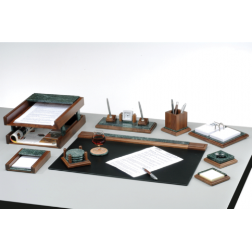 Набор настольный из натур. дерева и мрамора, 9 предметов, орех Особенность Тип дерево, мрамор Цвет орех Количество предметов в наборе 9 Новинка Нет Топ продаж Да Жесткая подкладка для письма: 650х439х22мм. Горизонтальный двойной лоток для документов с пресс-папье. Подставка с двумя шариковыми ручками и часами. Подставка для карандашей и ручек. Бокс с бумагой для записей: 100х150 мм. Бокс с бумагой для записей: 100х100 мм. Подставка под перекидной календарь. Подставка для визиток. Набор подставок под чашки, 6 штук. Упаковка: 1/2 кмпл.