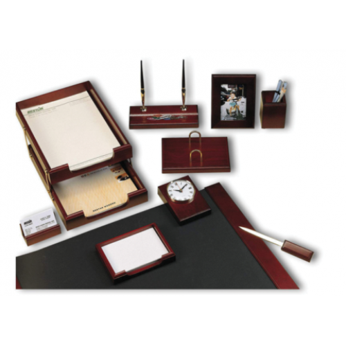 Набор настольный из натурального дерева, 10 предметов, красное дерево Особенность Тип дерево Цвет красное дерево Количество предметов в наборе 10 Новинка Нет Топ продаж Да Гибкая подкладка для письма с деревянным декором: 670х425х9мм. Горизонтальный двойной лоток для документов. Подставка под перекидной календарь. Подставка с двумя шариковыми ручками. Подставка для карандашей и ручек. Бокс с бумагой для записей: 100х150 мм. Нож для вскрытия корреспонденции. Подставка для скрепок с магнитом. Рамка для фотографии размером 90х130мм. Часы настольные. Подставка для визиток. Упаковка: 1/4 кмпл.