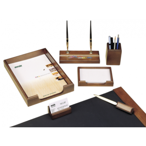 Набор настольный из натурального дерева, 7 предметов, орех Особенность Тип дерево Цвет орех Количество предметов в наборе 7 Новинка Нет Топ продаж Нет Гибкая подкладка для письма с деревянным декором: 653х419х9мм. Горизонтальный двойной лоток для документов. Подставка с двумя шариковыми ручками. Подставка для карандашей и ручек. Бокс с бумагой для записей: 100х100 мм. Рамка для фотографии размером 130х180мм. Подставка для корреспонденции на два отделения. Упаковка: 1/3 кмпл.