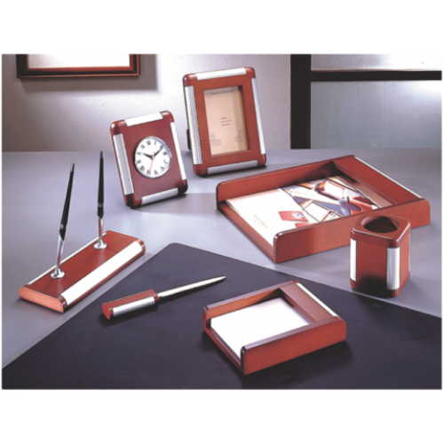 Набор настольный из натурального дерева, 8 предметов, темная вишня Особенность Тип дерево Цвет темная вишня Количество предметов в наборе 8 Новинка Нет Топ продаж Нет Жесткая подкладка для письма: 450х550х3мм. Горизонтальный лоток для документов. Подставка с двумя шариковыми ручками. Подставка для карандашей и ручек. Бокс с бумагой для записей: 100х150 мм. Нож для вскрытия корреспонденции. Рамка для фотографии размером 90х130мм. Часы настольные. Упаковка: 1/3 кмпл.