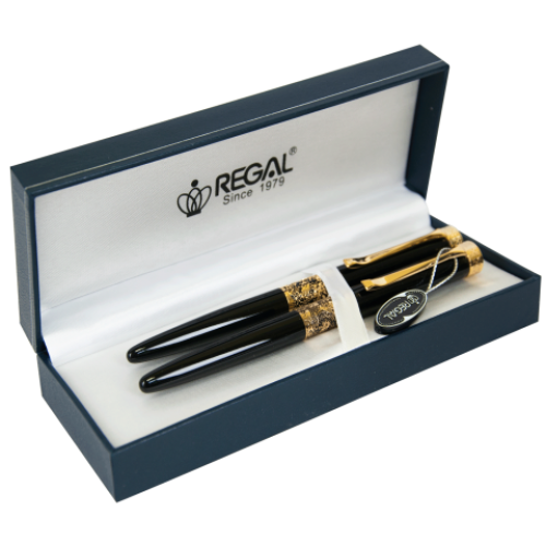 Комплект (П+Р) в подарочном футляре L, черный Особенность - Длина стержня, мм - Тип набора перо+роллер Упаковка подарочный футляр тип L Цвет чернила черный Новинка Нет Топ продаж Нет глянцевый корпус черного цвета, детали цвета золота с гравировкой
