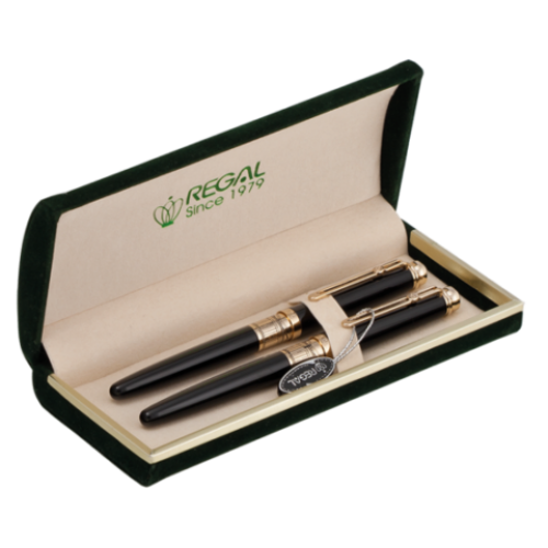 Комплект ручек (перо+роллер) "Пирамиды" в бархатном футляре Н, черный Особенность - Длина стержня, мм - Тип набора перо+роллер Упаковка бархатный футляр Цвет чернила черный Новинка Нет Топ продаж Нет Глянцевый лакированный корпус черного цвета, детали цвета золота с гравировкой. Декоративная вставка на колпачке в виде жемчужины.