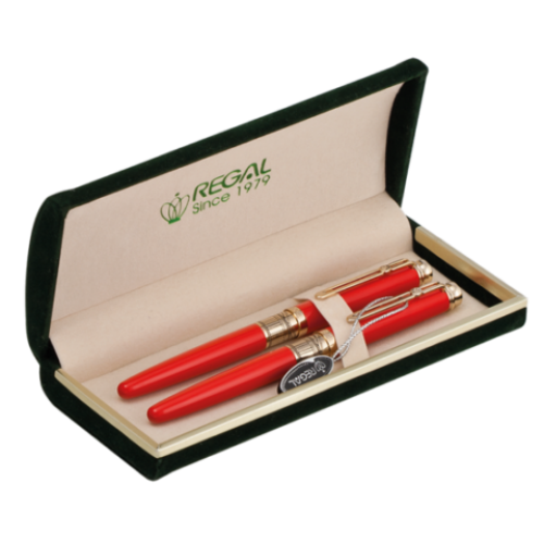 Комплект ручек (перо+роллер) "Пирамиды" в бархатном футляре Н, красный Особенность - Длина стержня, мм - Тип набора перо+роллер Упаковка бархатный футляр Цвет чернила черный Новинка Нет Топ продаж Нет Глянцевый лакированный корпус красного цвета, детали цвета золота с гравировкой. Декоративная вставка на колпачке в виде жемчужины.