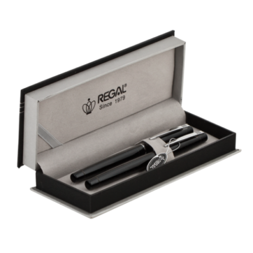 Комплект ручек (перо+роллер) в подарочном футляре P, черный Особенность - Длина стержня, мм - Тип набора перо+роллер Упаковка подарочный футляр тип P Цвет чернила черный Новинка Нет Топ продаж Нет Глянцевый лакированный корпус черного цвета, глянцевые хромированные детали.