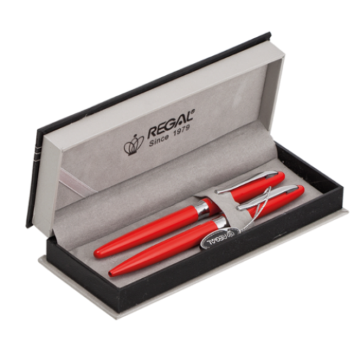 Комплект ручек (перо+шариковая) в подарочном футляре Р, красный Особенность - Длина стержня, мм 98 Тип набора перо+шариковая Упаковка подарочный футляр тип P Цвет чернила черный, синий Новинка Нет Топ продаж Нет Глянцевый лакированный корпус красного цвета, хромированные детали с гравировкой.