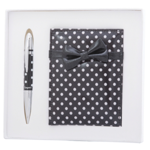 Набор подарочный "Monro": ручка шариковая + зеркало, черный Особенность - Длина стержня, мм 67 Тип набора ручка шариковая+зеркало Упаковка подарочный футляр Цвет чернила Синий Новинка Нет Топ продаж Нет Ручка покрыта лаком с гороховым принтом, элементы корпуса хромированы, материал корпуса - латунь. Настольное зеркало в модном чехле с принтом - Тиффани, размер чехла 12х15,5 см, размер зеркала 11х8,5 см,сменный стержень тип D1 LS.499002.