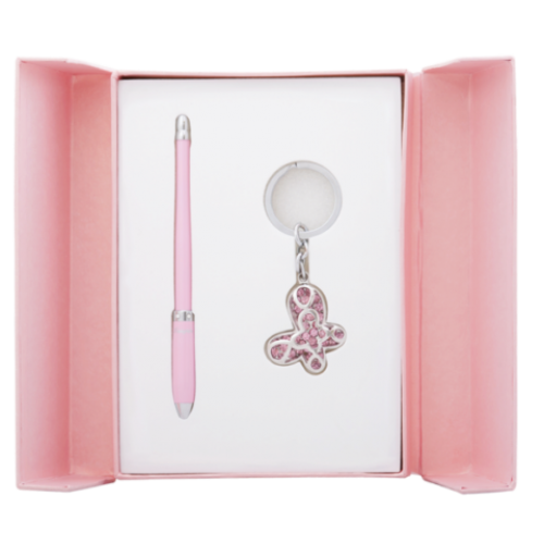 Набор подарочный "Night Moth": ручка шариковая + брелок, розовый Особенность - Длина стержня, мм 115 Тип набора ручка шариковая+брелок Упаковка подарочный футляр Цвет чернила Синий Новинка Нет Топ продаж Нет Ручка покрыта лаком, элементы корпуса хромированы, оригинальное строение корпуса, материал корпуса - латунь, 6 кристаллов по радиусу. Брелок - Бабочка, объемная, россыпь кристаллов кольцо для ключей, хромированный метал,сменный стержень тип D1 LS.499002.