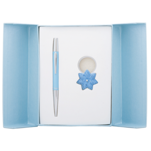 Набор подарочный "Star": ручка шариковая + брелок, синий Особенность - Длина стержня, мм 115 Тип набора ручка шариковая+брелок Упаковка подарочный футляр Цвет чернила Синий Новинка Нет Топ продаж Нет Ручка покрыта лаком, элементы корпуса хромированы, материал корпуса - латунь. Брелок - звезда, лак, россыпь кристаллов, хромированный метал, кольцо для ключей,сменный стержень тип cross LS.499000.