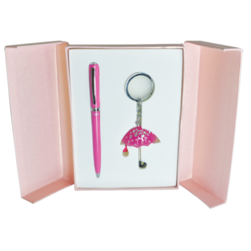Набор подарочный "Umbrella": ручка шариковая + брелок, малиновый Ручка покрыта лаком, элементы корпуса хромированы, материал корпуса - латунь, 6 кристаллов по радиус. Брелок -Зонтик, россыпь кристаллов, пачка выполнена из 8 стеклянных элементов, кольцо для ключей, хромированный метал,сменный стержень тип cross LS.499000.