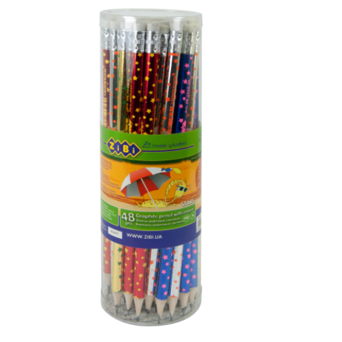 Карандаш графитовый STARS, HB, с ластиком, туба Материал Дерево Особенность Тип Вид Количество в упаковке 48 шт. Ластик Да Твердость грифеля HB Диаметр грифеля Новинка Нет Топ продаж Нет Заточенные чернографитные карандаши (твердость HB) с ластиком.Корпус: длина 185 мм, форма - круглая, материал - натуральная древисина (береза). Яркий, привлекающий внимание, дизайн корпуса с глянцевым лаковым покрытием. Цвета корпуса - ассорти: золото, серебро, красный, синий. Упаковка -пластиковая прозрачная туба по 48 шт.