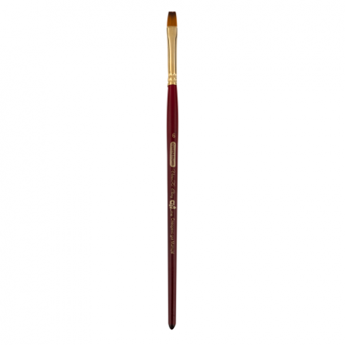Кисть синтетика, Cherry 6970, плоская, № 6, короткая ручка, ART Line Размер №6 Вид Вид ворса синтетика Для каких красок акварель, гуашь, тушь, темпера, масло Особенности блистер Форма волосяного пучка плоская Новинка Да Топ продаж Нет Стандартная выставка рабочей поверхности. Высококачественный синтетический волос (имитация колонка) отличается очень высокой мягкостью, эластичностью и упругостью. Материал ручки – натуральное дерево, покрашенное с благородный вишневый цвет и покрытое лаком. Обойма – бесшовная, из никелированной латуни. Плоской кистью наносятся широкие ровные мазки – он незаменимый помощник при работе с крупными областями полотна, когда необходимо нанесение широких ровных мазков постоянной толщины. При необходимости можно изменять толщину мазка, изменяя поворот кисти в процессе рисования. Плоская кисть очень удобна при изображении таких элементов природы, как земля, трава, листья, относительно точных очертаний. Рекомендуется для всех распространенных видов красок. Незаменимый помощник при работе с жидкими красками – гуашью и акварелью – когда от кисти нужна высокая упругость. При работе с акварелью дает матовый, смягченный слой цвета. Хорошо регулирует текучесть краски и интенсивность цветового слоя.