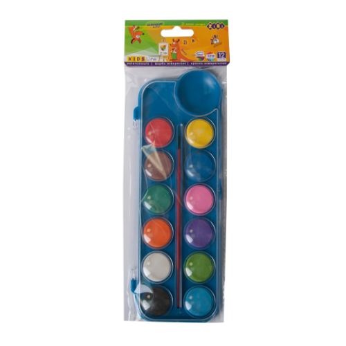 Акварель 12 цветов, пласт./кор., с/кист., синий Особенность цветная коробка Вид красок акварель Кисточка в наборе да Количество цветов 12 Объем краски одного вида - Тип упаковки коробка пластиковая с крышкой Новинка Нет Топ продаж Нет 12 цв., водорастворимая, с кистью. Пластиковый бокс, отделения для смешивания красок