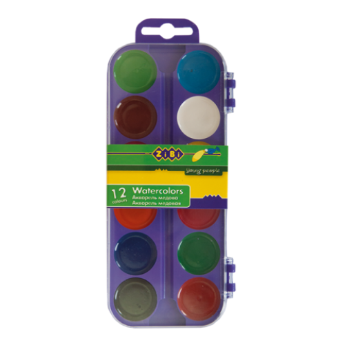 Акварельные краски 12 цветов, пластик. фиолетовый футляр Особенность цветная коробка Вид красок акварель Кисточка в наборе нет Количество цветов 12 Объем краски одного вида - Тип упаковки коробка пластиковая с крышкой Новинка Нет Топ продаж Да Акварельные краски широко используются для детского творчества, а также для художественных, оформительских и декоративно-прикладных работ. Быстро высыхают на бумаге. В состав входят медосодержащие продукты. Яркие цвета. Упаковка: пластиковый футляр с еврозавесом. Безопасны для детей, нетоксичны, не имеют резкого запаха. Легко смываются водой с рук и одежды.