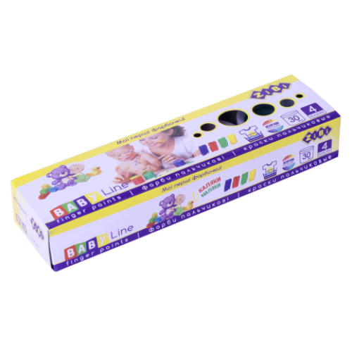 Краски пальчиковые 4цв.х30мл, BABY Line Особенность Вид красок гуашь Кисточка в наборе нет Количество цветов 4 Объем краски одного вида 120 мл Тип упаковки Новинка Да Топ продаж Нет